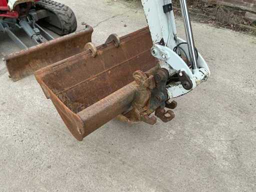 Equipped with: hydraulic quick change VW05, cleaning bucket 1000mm, slot bucket 220mm, with reversible ears, lifting hook, work lights, underlays to be widened, rotating beacon, offset boom, radio, total length 3,875 mm, total height (cab / awning) 2,360 mm, total width superstructure (cab / awning) 1,055 mm, ground clearance 205 mm, total length tracks 1,520 mm, total width tracks - tracks retracted 980 mm, total width tracks - tracks extended 1,300 mm.