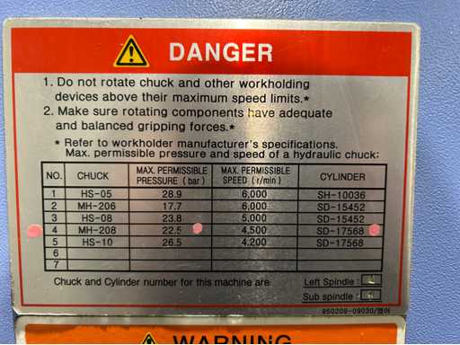 Sub spindle speed: 6000rpm