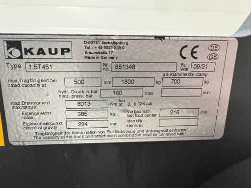 2021 FEM2 Kaup 1.5T451 1.800kg Swivel Clamp 360° Rotary Device + Fork Adjuster