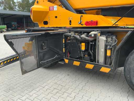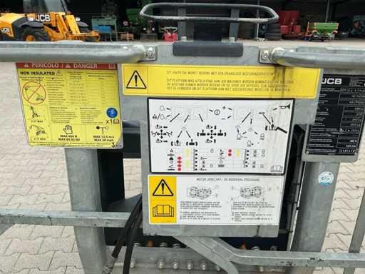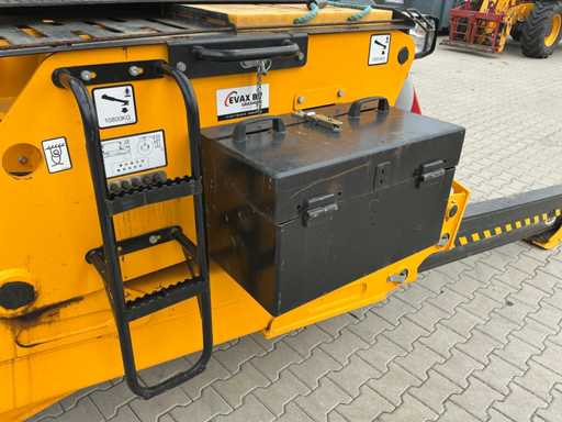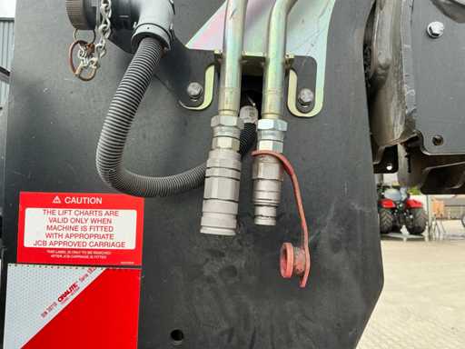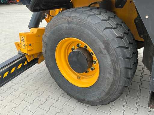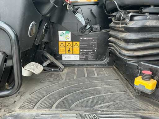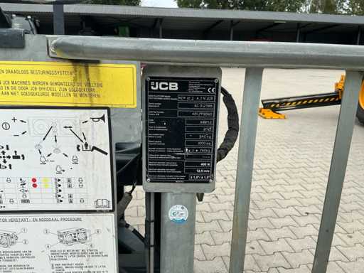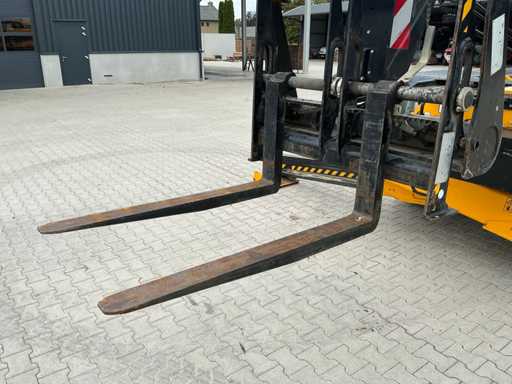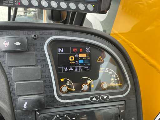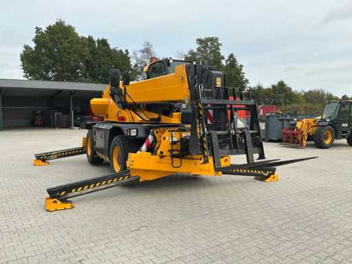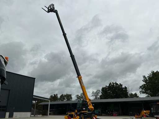 Equipped with: 555-210R MP [T4F] (JCB5MB4TEM2792820), Mitas 445/65R22.5, single boom end assist system with auxiliary line, roto 5.5-21 cab superstructure, air suspension seat, luxury fabric and heated, roto Q-fit chassis, manual pin lock, grouped chassis front/rear and boom lubrication points, immobilizer with keypad, amber LED beacon package, complete LED work light package, air conditioning for LED lighting only, radio remote control, lockable chain guard on chassis, toolbox, 4x telescopic outriggers with one push of a button automatic unfolding/leveling/retracting, rear and side camera set, 4x outrigger mats and storage space for outrigger mats, front and rear window wipers, sunshade, Attachments: JCB fork frame and forks Clearview Tuv, JCB Q-fit 680 mm jib - 5.5 tons, JCB Q-fit work basket: capacity 1000 kg 180° swivel, 7-inch screen with RFID recognition of attachments helps manage the load and prevent overload, three different steering options with automatic all-wheel alignment, dealer serviced.