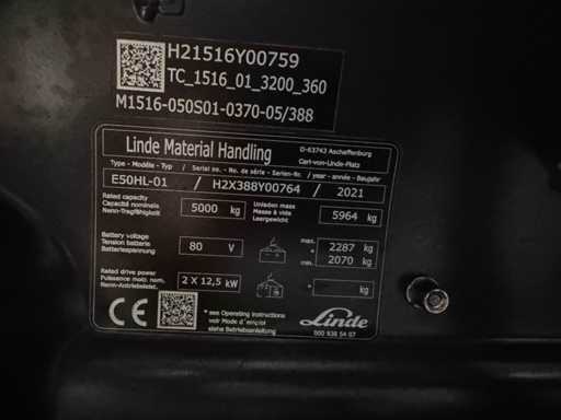 2021 Service + UVV 07/2026 Linde E50HL EVO 3rd + 4th valve electric forklift 4,387 hours