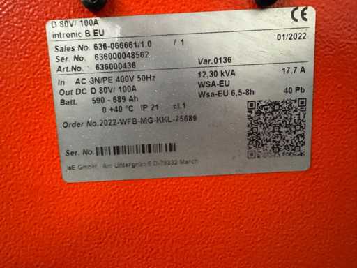 2022 Linde 80V 100A 590-689Ah Forklift Charger Laoder