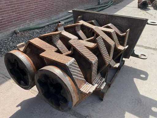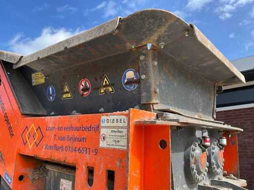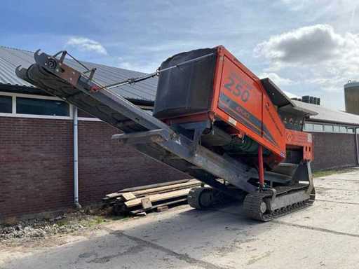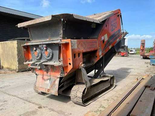 hour position 1322 Hr, bunker inside dimension (LxW) 2600x1500 mm, equipped with Volvo Penta diesel engine, adblue, interchangeable rollers, sieve cage, 2x set concrete rollers, 1x set biomass rollers, receiving hopper, 129 Kw, TrackOne track chassis, track width 400 mm, magnetic tape, foldable discharge belt (LxW) 7200x700 mm, dump height hydraulically adjustable, hook lift sled/hook, sled length approximately 6000 mm, sieve belt with sieve deck, radio remote control,