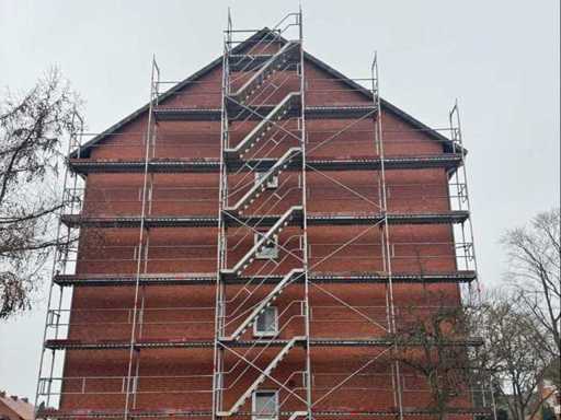 The scaffolding has to be dismantled, it has a stair tower including aluminum ascent with landings