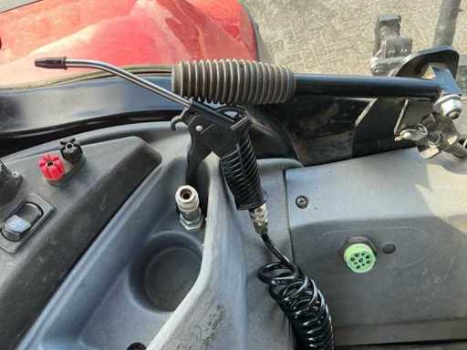 Equipped with: 4x double-acting rear hydraulic valves, front linkage, bevel (adjustable tipper knob), adjustable pitonfix tow bar, adjustable muzzle tow bar, all-round lighting, NL registration, armrest with control panel, top link front and rear, fender control, suspension and heated seat, isobus, load-sensing, ABS connection, work lights, suspended front axle, air pressure brake system, hydraulic braking system, suspended cabin, on-board computer (S-TECH 700 plus with advanced option transmission settings), external air connection + blow gun in cab, PTO rpm (540/540e/1000), max travel speed 45km/h