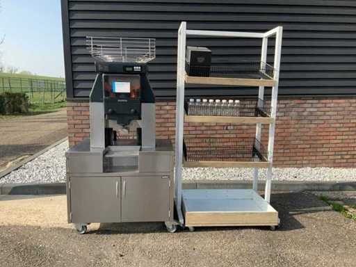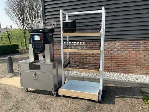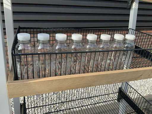 Orange pressing machine incl. bottle rack and bottles.