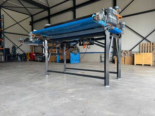 Equipped with Working width: 2400mm; smooth PVC infeed belt and output belt; Hedgehog belt with frequency regulator (foldable); PU rollers with frequency regulator; Each roller equipped with motor (PU rollers); Dirt belt incl. Roller set for sifting soil and bulbs!