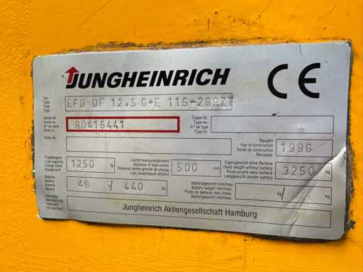 47/2021 Service + UVV 08/2026 Jungheinrich ERFG-DF 12.5 Electric forklift 5,256 hours