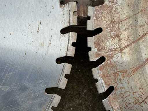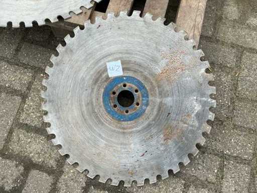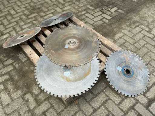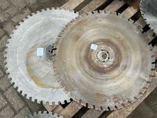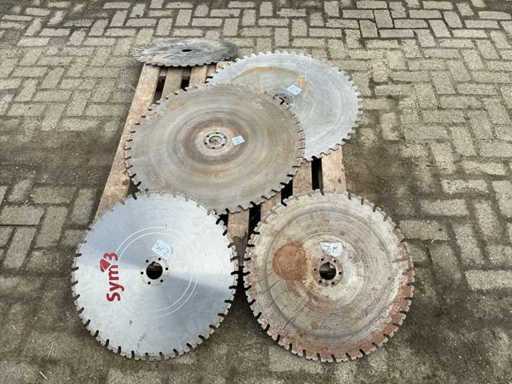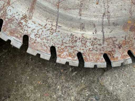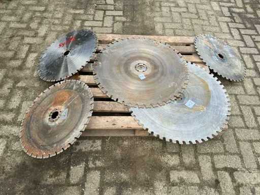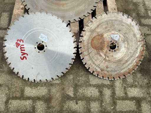 Equipped with: Diamond wall saw blades. Adamas high speed diamond solutions. Axle hole round 600mm.2x 800mm 3x 600mm diameter. 6mm thick.