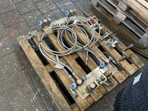 Stainless steel gas distribution panel + safety valves + high-pressure hoses – complete system