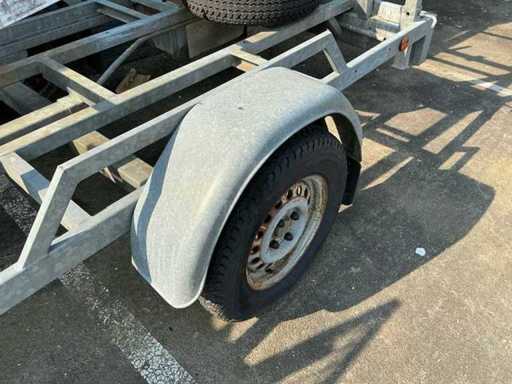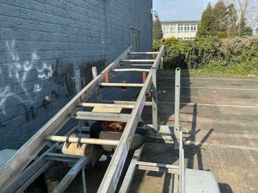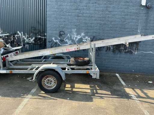 Construction hoist is incomplete on trailer.
