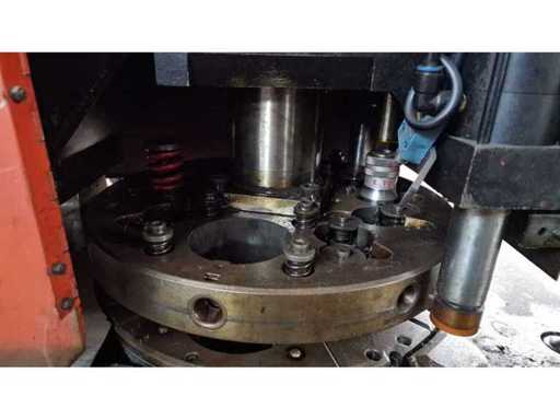 CNC punching machine AMADA Aries 222 designed for processing and perforating sheet metal. The machine is equipped with a turret system allowing quick tool changes and efficient production, making it suitable for industrial sheet metal fabrication.