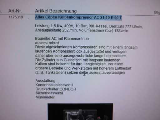 ATLAS COPCO AC21-10 E90T Piston Compressor