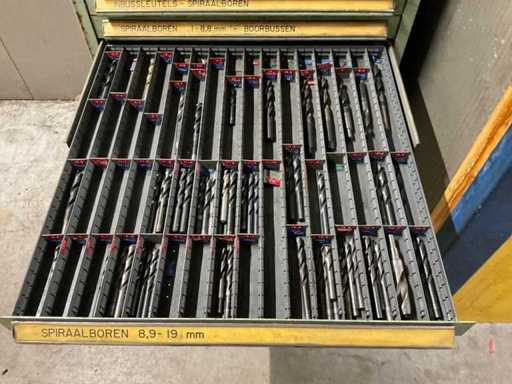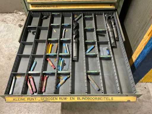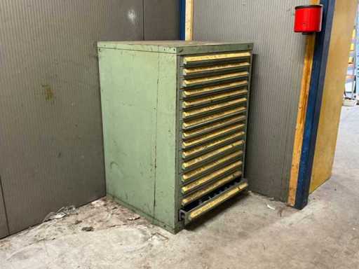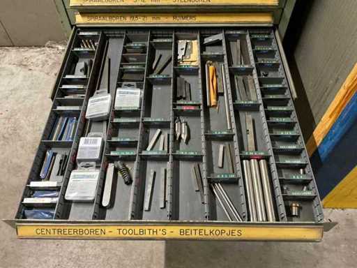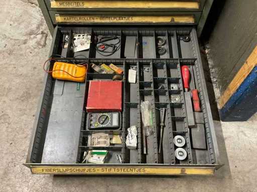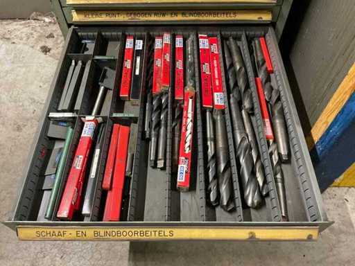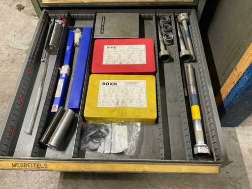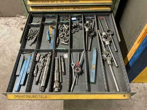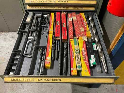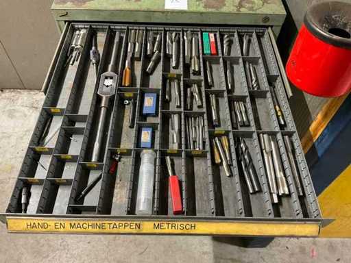 including chisels; drilling and tapping; incl. workshop chest of drawers; Dim. approx. 760x700x1120 mm