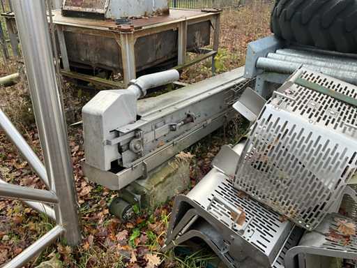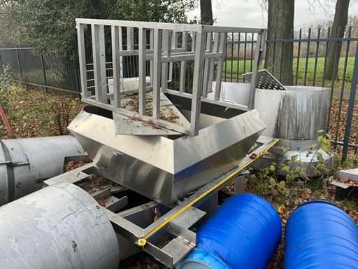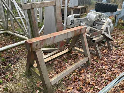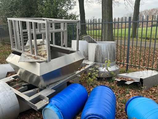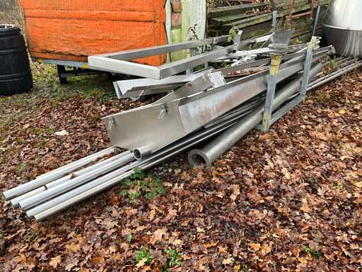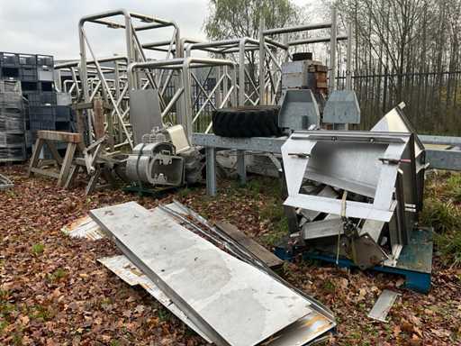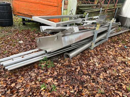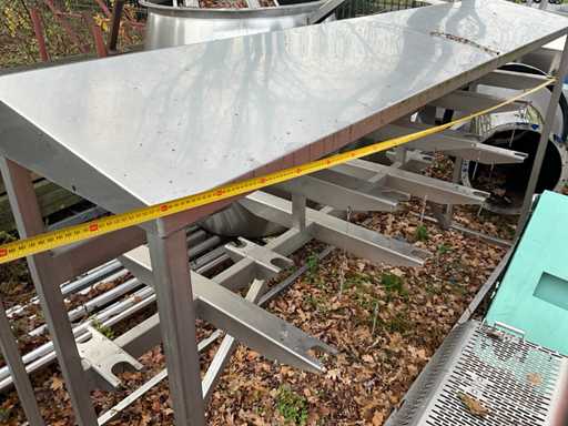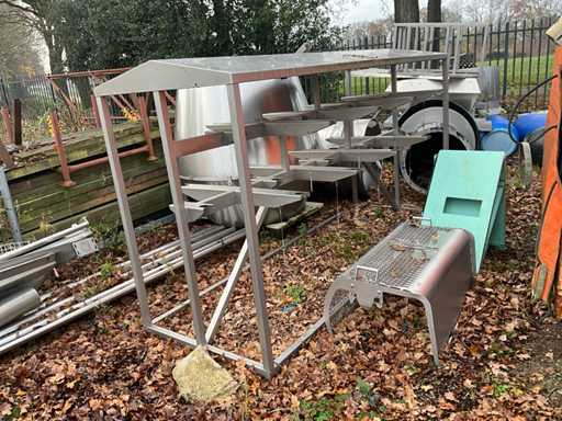 Consisting of stainless steel parts, including: various sizes of trestles. Includes wheel with rim and steel roller conveyor