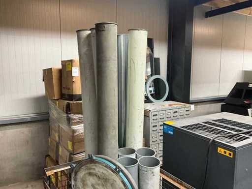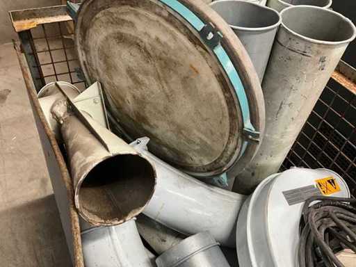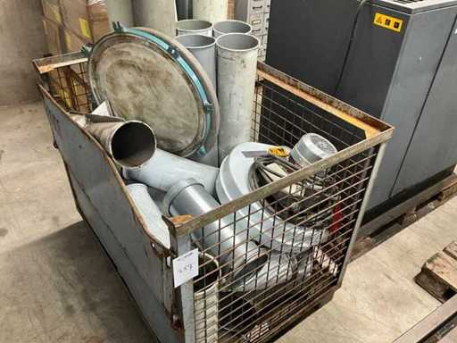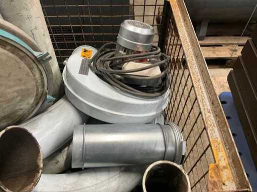 Batch consisting of various metal air ducts, Ø 170mm, bends, end plates and fan, Suitable for industrial ventilation or extraction systems,