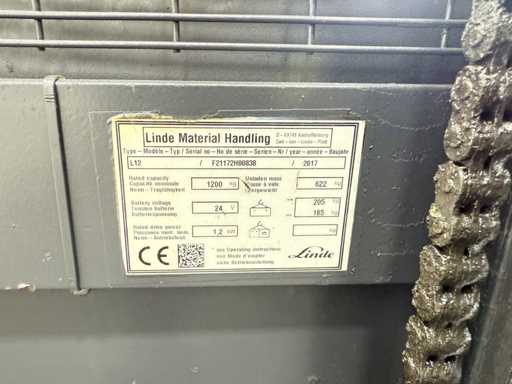 Battery 2022 2017 S+UVV 03/2026 Linde L12 Stacker Pallet Truck Ant 3,342 hours