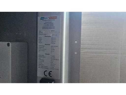 Operating parameters: Grid 400 V (3L/N/PE), 50 Hz; IP55; noise 70 dB(A); air press. 6 bar; air flow 260 l/min; water flow 18 l/min; max. water press. 2.5 bar; max. water hardness 4–8 °dH / 7–15 °fH; LAN 100/1000 Mbit/s