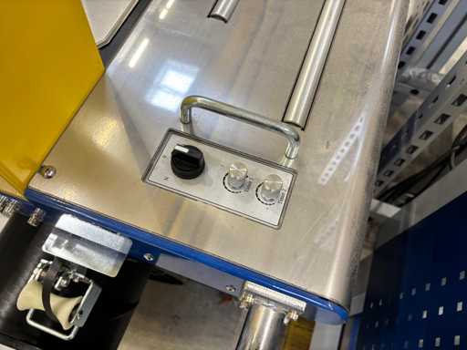 Machine No. 1020-14808, passage width max. approx. 840 mm, passage height max. approx. 590 mm, table with castors, control unit with digital display (The article is in condition as existing and unchecked. The article is sold from the foundation and without content/material! There are no pallets available for dismantling and loading the item, other packaging material on site and the buyer has to rent a forklift, tank rollers, machine jacks, etc. at his own expense if necessary!)