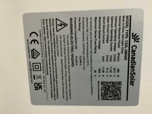 Maximum Power Rating (Pmax): 380W