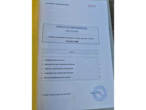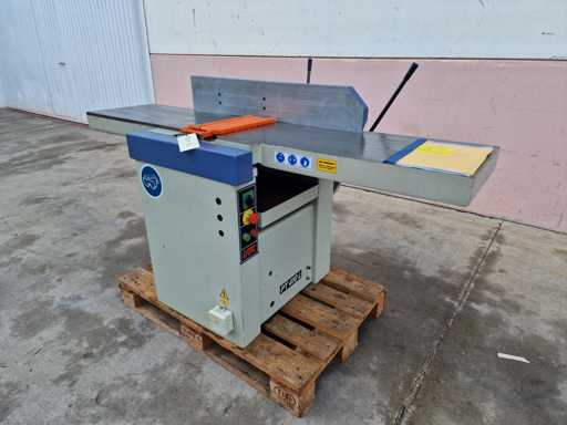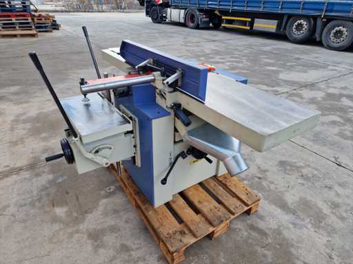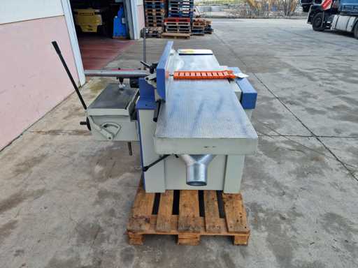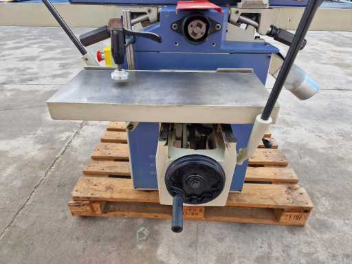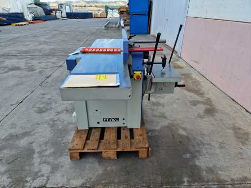 - PLANER: planing width 410 mm, table length 1840 mm, shaft with 3 blades, tilting guide measuring 1000 x 170 mm, 3 KW motor for planer, thicknesser and drill.