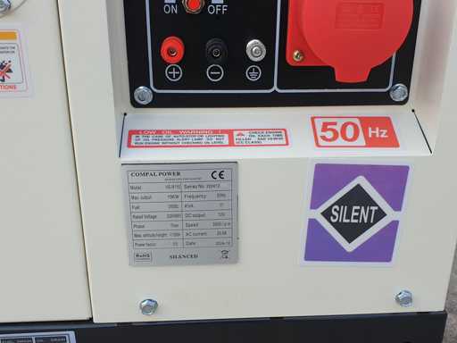 COMPAL POWER VG-R110 electric generator, super silenced, electric ignition, diesel engine with consumption reduction system, stabilized current protection, electronic voltage control Outputs 220/380 Volt, power 10 kW-11 kVA