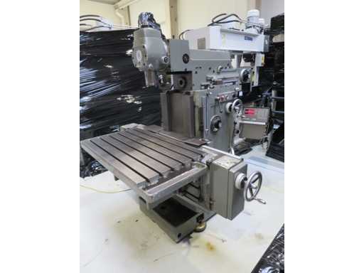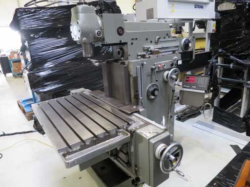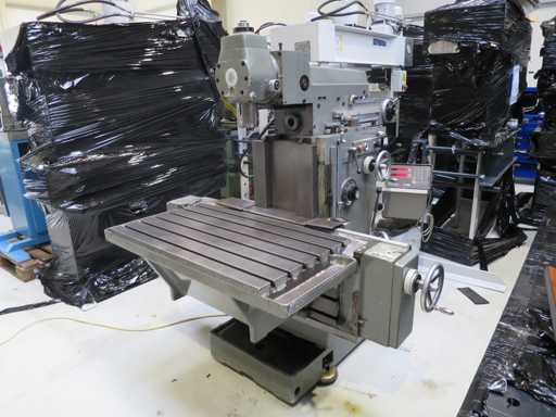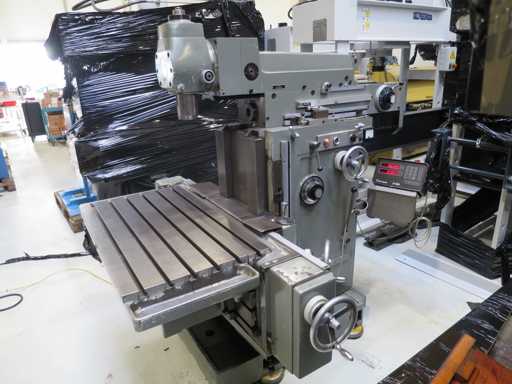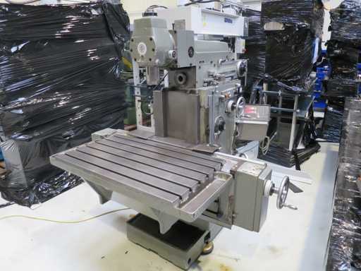 Universal Tool Milling Machines - Digital display - Angle table - Coolant system - Machine feet x-travel 500 mm y-travel 400 mm z-travel 450 mm Speed 31.5 - 1600 rpm Tool holder SK 40 Quill stroke vertical 80 mm Quill diameter 80 mm Table: 1000 x 850 mm Total power requirement 4.0 kW Machine weight approx. 2.6 t Dimensions L x W x H 2.1 x 1.7 x 1.7 m Condition: unchecked (6)