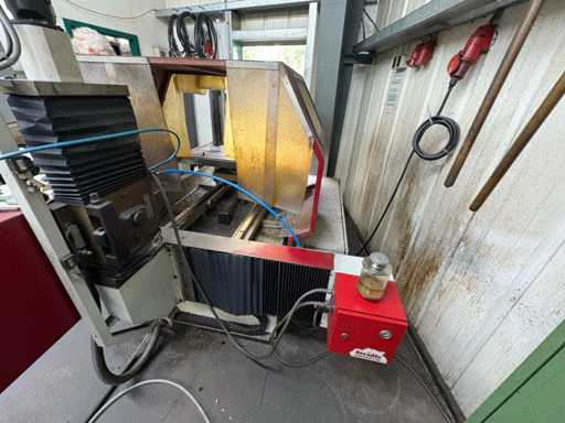 The machine is in used, working condition according to its age. The mechanical guides show normal signs of wear. The control system and motors work, the protective cover is in place. The working area shows production-related chip and lubricant residues. The machine is ideal as a supplement in small workshops or for the production of individual parts, especially for drilling and milling with low infeed. Various drills, see pictures, are included.