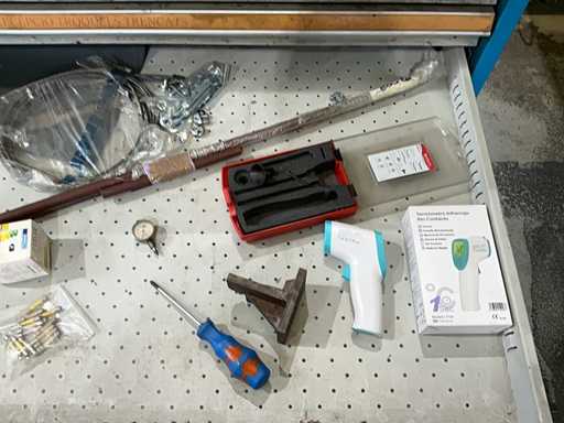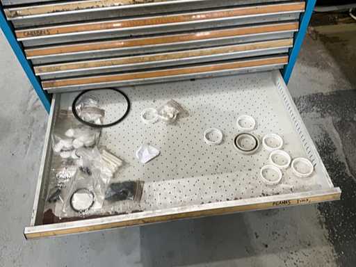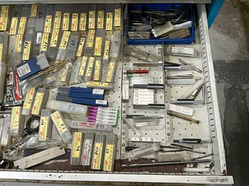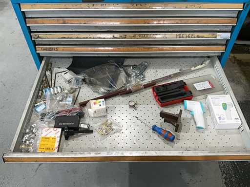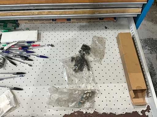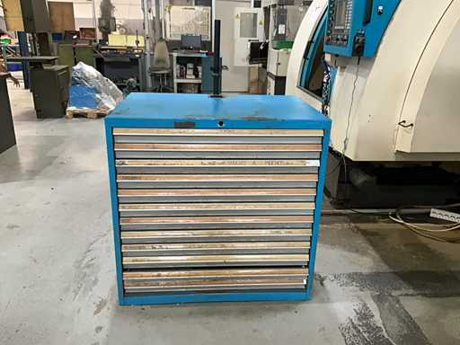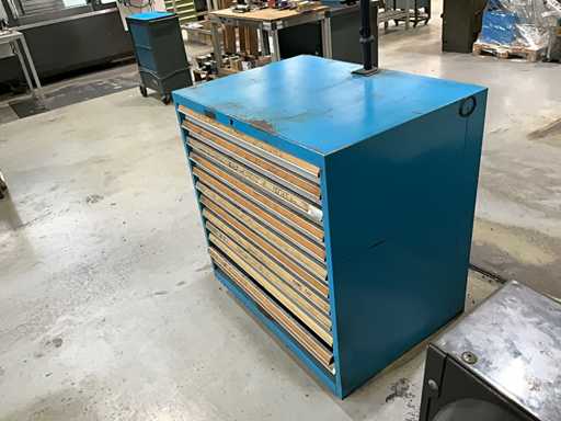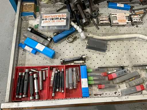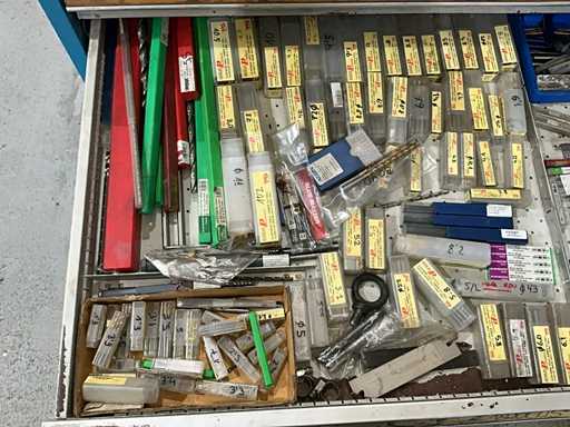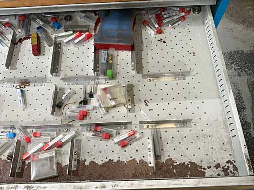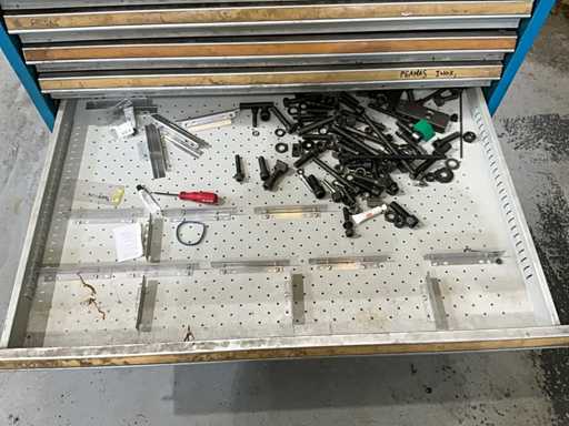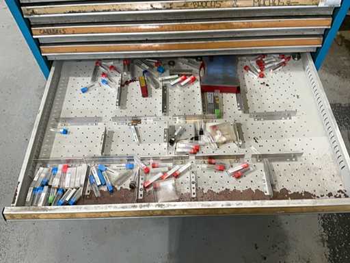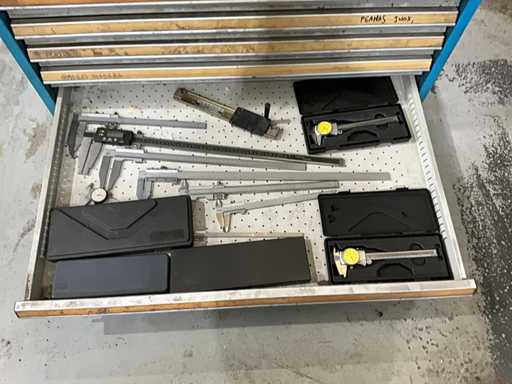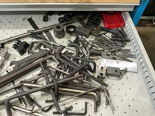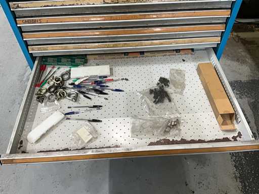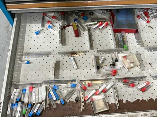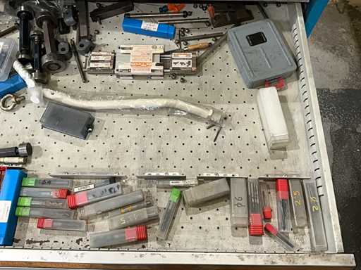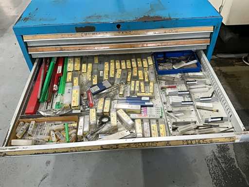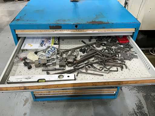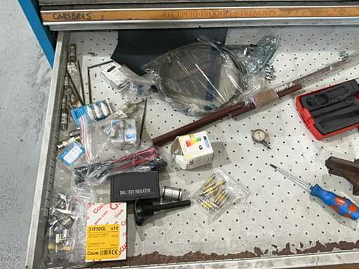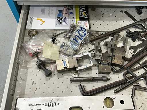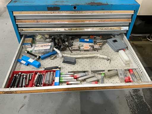 - Includes a variety of contents in the drawers: Allen keys, clamping tools, screws, machined parts, gauges, drill bits, milling cutters and measuring tools