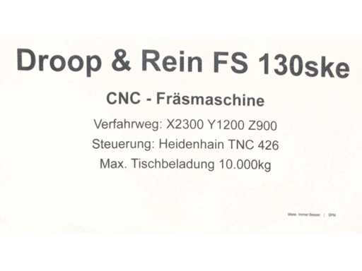 • Manufacturer: Droop & Rein• Type: FS 130 SKE – Vertical CNC bed milling machine with 3 axes