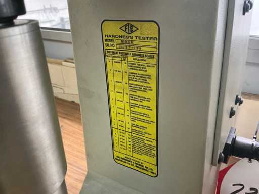 Includes Rockwell hardness scale chart (A, B, C, D, E, F, G, H, K, L, M, P, R, S, V) with corresponding loads and indenters