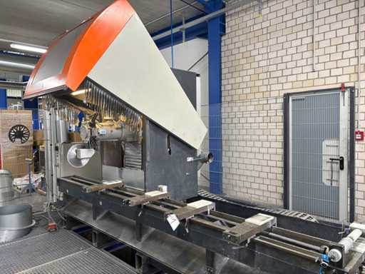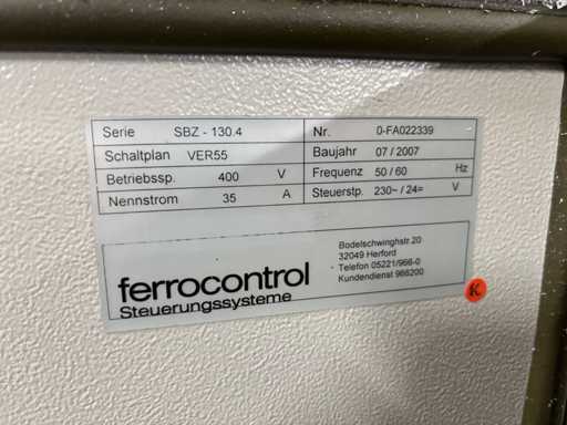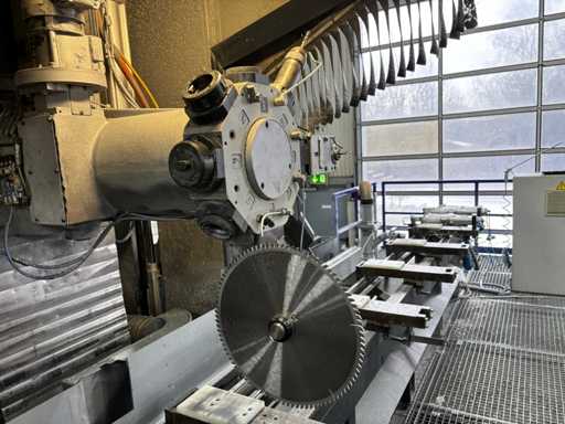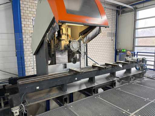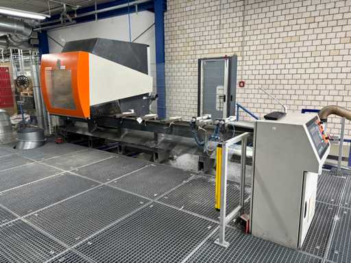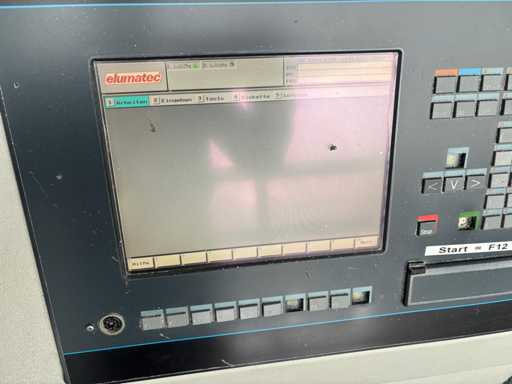 CNC Bar Machining Center for Aluminum, Machine No. 1300030760, machining length max. approx. 4200 mm, tool turret 8-fold, spindle power max. approx. 5.5 KW, angle head saw unit, angle head drilling/milling horizontal, drilling/milling vertical 2 pieces, brackets 6 pieces, material tensioner 2 pieces, control Ferrocontrol (The article is in condition as existing and untested. The article is sold from the foundation and without content/material! For the dismantling and loading of the item, there are no pallets, other packaging material available on site and the buyer must rent a forklift, tank rollers, machine jacks, etc. at his own expense if necessary! Attention: The Elumatec CNC bar machining center stands on a pedestal with a mesh floor. This area was the former ramp area. The mesh floor must not be driven on with a forklift. Important, bring drivable plates and tank rollers for dismantling! If you have any further questions, contact Ludger Reuther, mail: lre@surplex.com or mobile: +49 173 6172604)