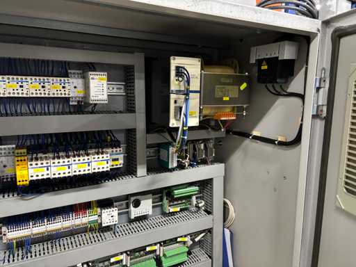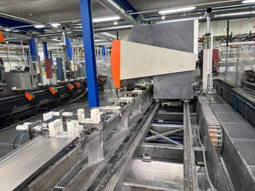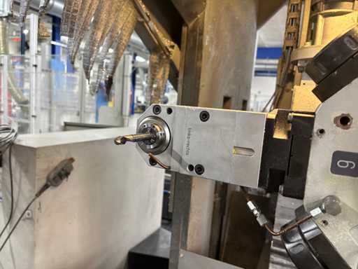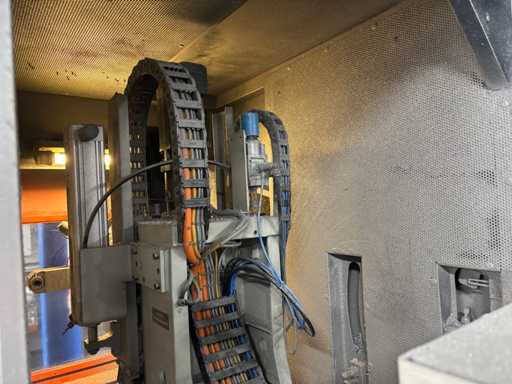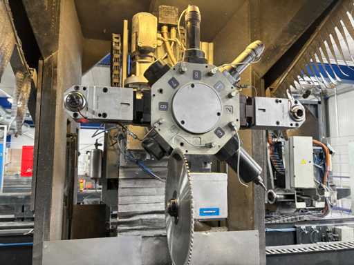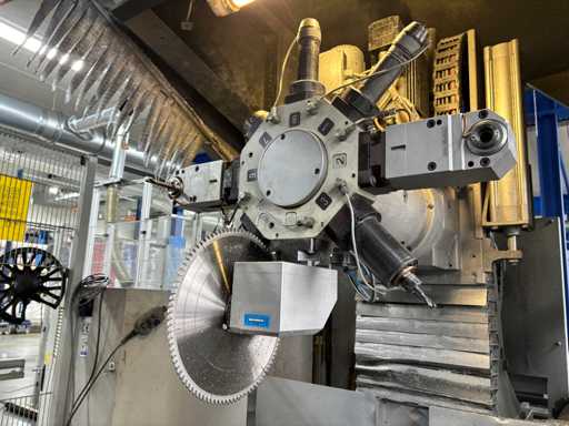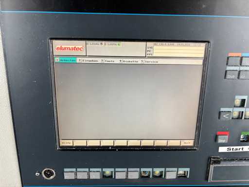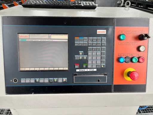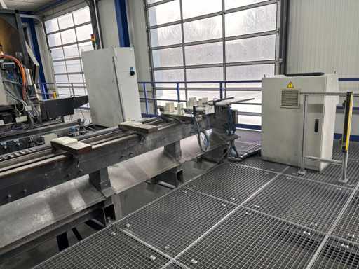 CNC Bar Machining Center for Aluminum, Machine No. 1300030743, machining length max. approx. 4200 mm, tool turret 8-fold, spindle power max. approx. 5.5 KW, angle head saw unit, angle head drilling/milling horizontal 2 pieces, drilling/milling vertical 3 pieces, brackets 6 pieces, material tensioner 2 pieces, control Ferrocontrol (The article is in condition as existing and unchecked. The article is sold from the foundation and without content/material! For the dismantling and loading of the item, there are no pallets, other packaging material available on site and the buyer must rent a forklift, tank rollers, machine jacks, etc. at his own expense if necessary! Attention: The Elumatec CNC bar machining center stands on a pedestal with a mesh floor. This area was the former ramp area. The mesh floor must not be driven on with a forklift. Important, bring drivable plates and tank rollers for dismantling! If you have any further questions, contact Ludger Reuther, mail: lre@surplex.com or mobile: +49 173 6172604)