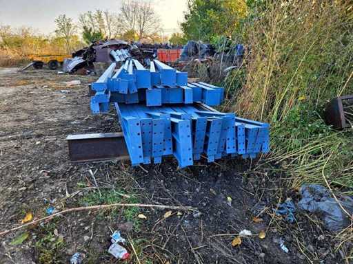 The structure consists of 2 beams (trusses) at the ends made of IPE 160 profile; 5 intermediate beams (trusses) from IPE 220 profile; 4 end columns from IPE 160 profile; 10 intermediate columns from IPE 220 profile; 4 door columns from square pipe 100x100x4; 6 pressure uprights from pipe 76x4; wind bracing for beams and columns made of galvanized steel with 16 mm tensioner;