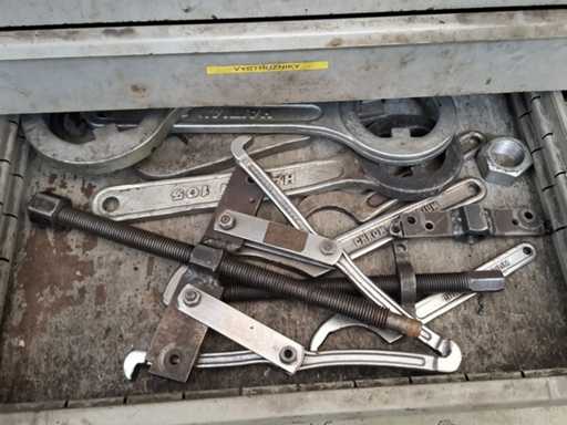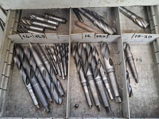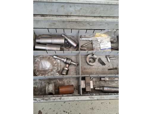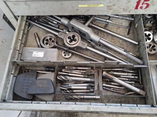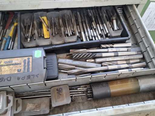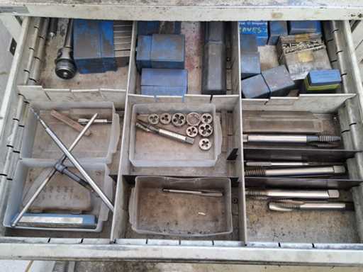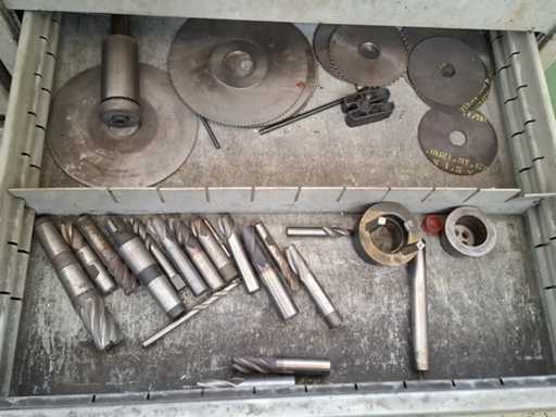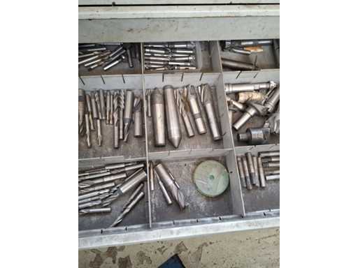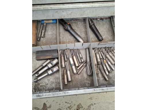N°2 drawer units of eight shelves each complete with various tools (drills, cutters, tapping machines, various tools).