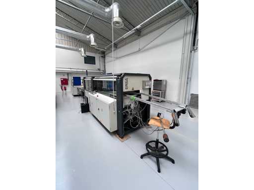 Power: 54.5 kW • Additional Notes: Equipped with nitrogen (N₂) supply installation. Includes approx. 4-meter infeed conveyor (removable). Exhaust requirement: 800/2×400 m³/h. Compressed air supply: min. 6 bar, max. 8 bar. Nitrogen supply: min. 6 bar, max. 10 bar. General: A wave soldering machine designed for through-hole soldering processes, enabling high-quality soldering with integrated fluxing and preheating zones.