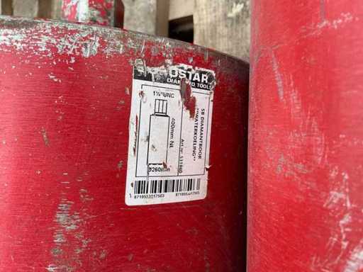 Equipped with: connection 1 1/4 UNC Thick-walled. Diamond concrete drill. 170, 221, 225, 260, 280 mm diameter. Length 3x 420mm 1x 360mm 1x460mm