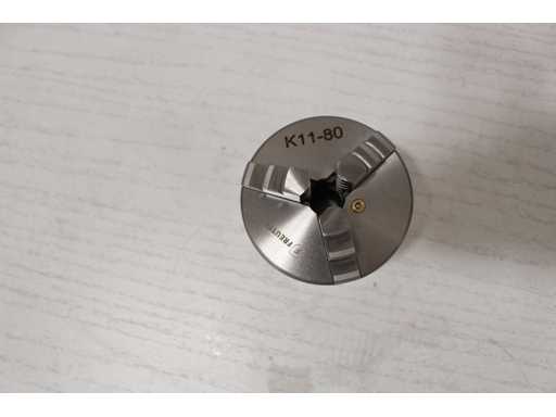 Chuck for self-centering lathe 3 + 3 jaws 80mm, body in ground cast iron, closing with helical ring, concentric manual clamping, tempered jaws