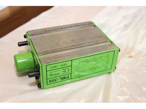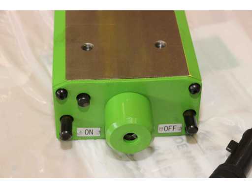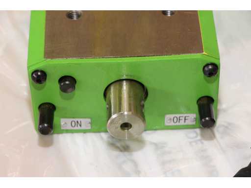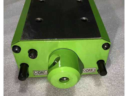 2 UNITS/SETS OF ATT0040 PACKED TOGETHER. A SINGLE ATT0040 CORRESPONDS TO: Magnetic force 300 Kg - permanent. Dense polarity for machining small and thin pieces. High-strength magnet system. Activation and deactivation by hand lever. In the OFF position, a weak reverse shot takes care of facilitating the removal of parts. With longitudinal and transverse stop.