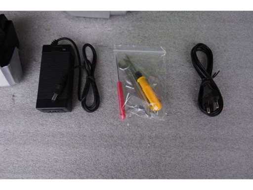 2 UNITS/SETS OF LON0001 PACKED TOGETHER. A SINGLE LON0001 CORRESPONDS TO: Battery strapping machine for polyester strap with vibration welding. Designed to apply high tensions to the strap, it has a maximum tensioning capacity of 2800 N expressly designed for polyester, PP or PET strapping, strap width from 13mm to 16mm, thickness 0.5 - 1.2 mm. It guarantees excellent performance by combining the solidity of the mechanics with the practicality and precision of digital technology. 3.0Aih12VCD lithium battery. Recharge time 90 minutes, strapping cycles for each recharge from 100 to 220. Weight about 3 kg.