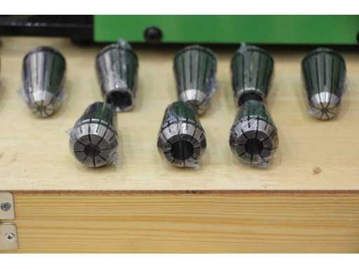 Grinding is accurate and rapid, easy operation with no skill to grind. With diamond grinding wheel, it can be equipped directly with an accurate angle and long service life. The electrically controlled and powerful motor: stable frequency, strong horsepower and long service life. Bearing shaft and locking unit. The machine is set up with the function of adjusting a point (central point) size, which can effectively coordinate with the material of drill hole and the rotation speed. It can control the quality precision and prolong the service life of the drill bit. Standard with CBN grinding wheel for the HSS material. Grinding Range:Φ3-Φ13, Point Angle:100°~135°, Power:AC220V, Motor:120W, Speed:4400rpm, Standard Equipment:Grinding wheel:CBN (for HSS)×1, Eleven collets:Φ3,Φ4,Φ5,Φ6,Φ7,Φ8,Φ9,Φ10,Φ11,Φ12,Φ13