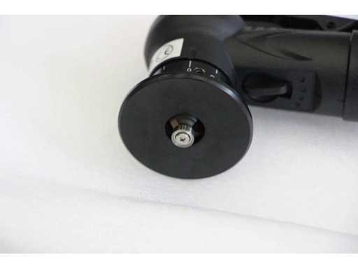 Pneumatic tool for manual chamfering with a range up to 2-3 millimetres. Chamfering capacity C0.1-C1.5; radius R1.5. No-load rotation speed 3000 rpm, bore 0.1 - 0.9 mm, pneumatic supply 0.4 m³/min, operating pressure 0.6 - 0.8 mpa. Item weight 0.44 kg.
