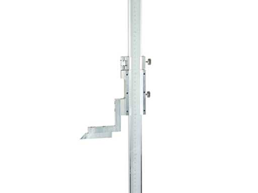 Sturdy base with ground support surface, hardened and ground shaft. Stainless, anti-reflective chromed reading elements. Black reading scale for easy reading. Micrometric adjustment. The slightly raised edges of the sliding rod prevent the movement of the slide from damaging the graduation. The zero value and the scribing tip are aligned with the footprint of the socket (measuring range from "0"). Tracking measurements can thus be directly detected without calculation errors. Scoring point with hard metal coating.