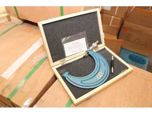 4 UNITS/SETS OF SDM0053 PACKED TOGETHER. A SINGLE SDM0053 CORRESPONDS TO: Professional outside micrometer with a range of 100-125 mm, resolution 0.01 mm. The positive spindle lock holds the anvils in place to ensure accurate measurement registration. High-quality construction combined with easy handling makes this type of analogue micrometer particularly suitable for control operators, workshop technicians, repairers and service personnel. It is supplied in a wooden case for storage and easy transport.