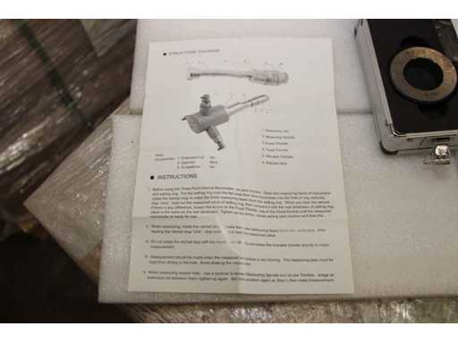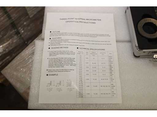 4 UNITS/SETS OF SDM0063 PACKED TOGETHER. A SINGLE SDM0063 CORRESPONDS TO: Three-point micrometer for internal measurements from 40 to 50 mm. Diameter 23.5 mm, depth up to 100 mm, height of measuring tips 12.8 mm. 40 mm calibration ring included. Accuracy 4 um, resolution 0.005 mm. Certificate included