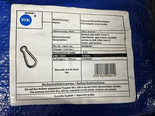 Galvanized carabiner 180x14mm (20x)
