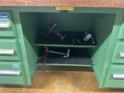 Object: Industrial workbench with tool wall