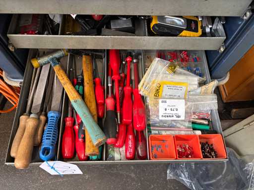 Content consisting of: various hand tools and workshop supplies