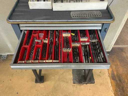 With contents, on trolleys, drills in various sizes and designs