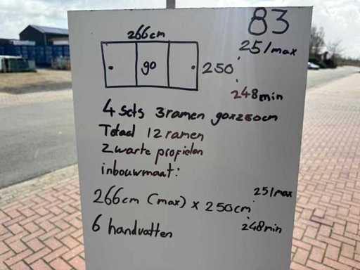 4 sets of 3 sliding windows 90 cm x 250 cm, clear glass